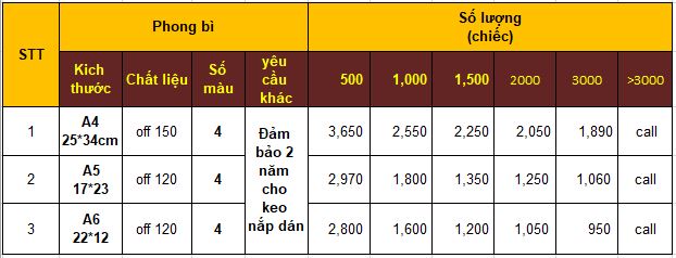 Một số mẫu phong bì doanh nghiệp tại PERFECT PACKS