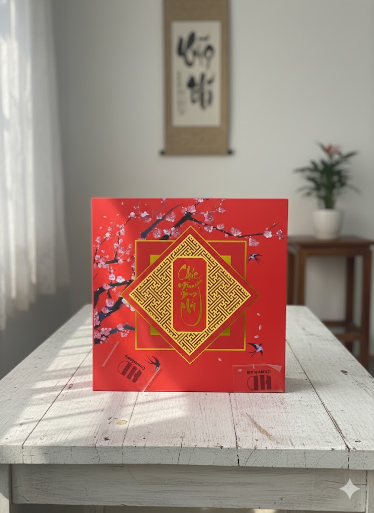 Mẫu hộp "Xuân Sang" mang đậm nét văn hóa truyền thống Việt Nam.